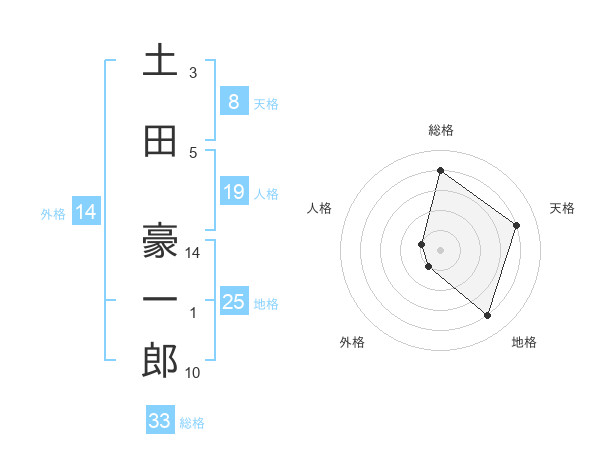 土田 豪一郎さんの総格は33画の4点!