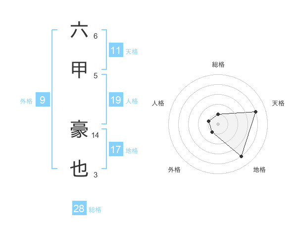 六甲 豪也さんを姓名の画数から五運を鑑定