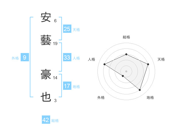 安藝 豪也さんを姓名の画数から五運を鑑定
