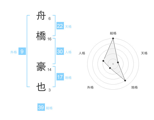 舟橋 豪也さんの総格は39画の5点!