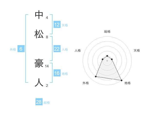 中松 豪人さんの天格は12画の1点!