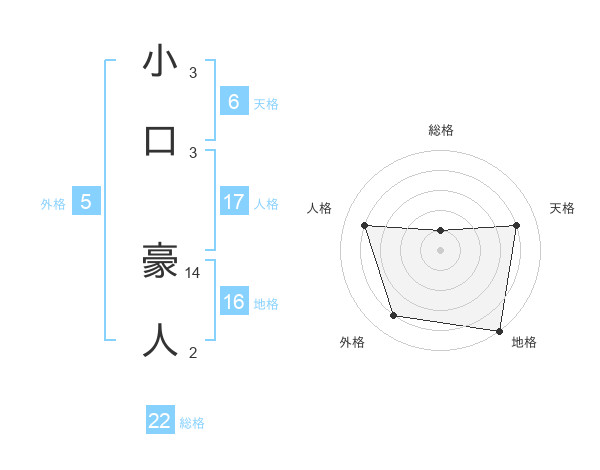 小口 豪人さんの総格は22画の1点!