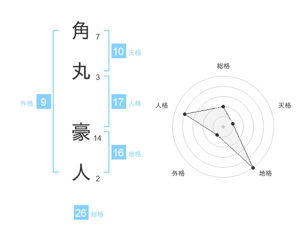 角丸 豪人さんの総格は26画の2点!