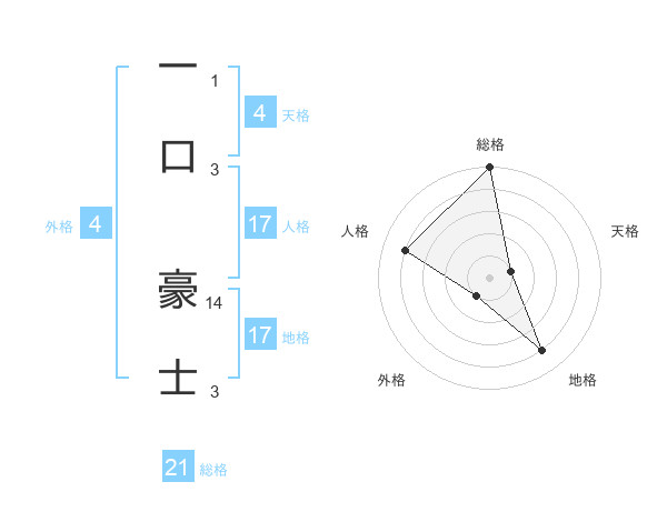 一口 豪士さんの地格は17画の4点!