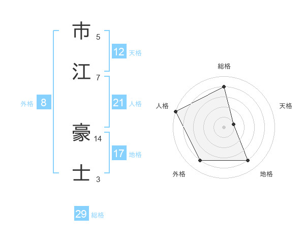 市江 豪士さんの総格は29画の4点!