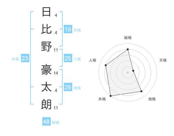 日比野 豪太朗さんを姓名の画数から五運を鑑定
