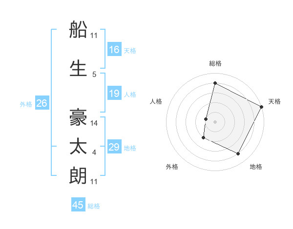 船生 豪太朗さんを姓名の画数から五運を鑑定