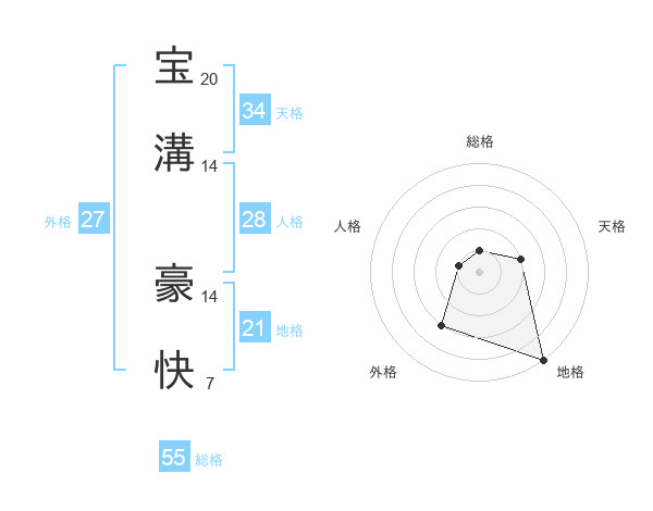 宝溝 豪快さんの地格は21画の5点!
