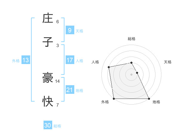 庄子 豪快さんの外格は13画の5点!