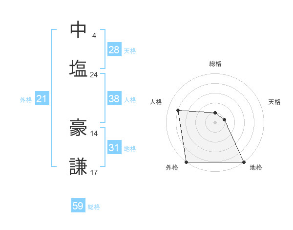 中塩 豪謙さんを姓名の画数から五運を鑑定