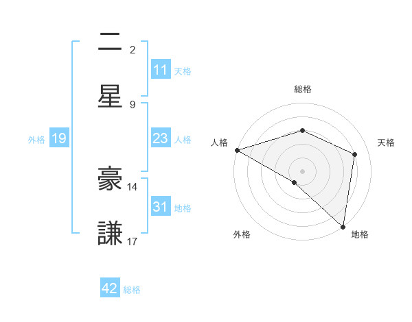 二星 豪謙さんの人格は23画の5点!