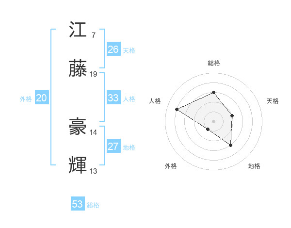 江藤 豪輝さんの総格は53画の3点!