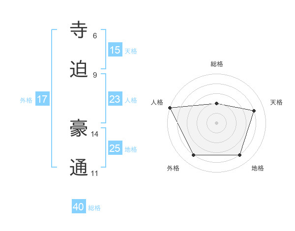寺迫 豪通さんの地格は25画の4点!