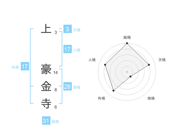 上 豪金寺さんの総格は31画の5点!