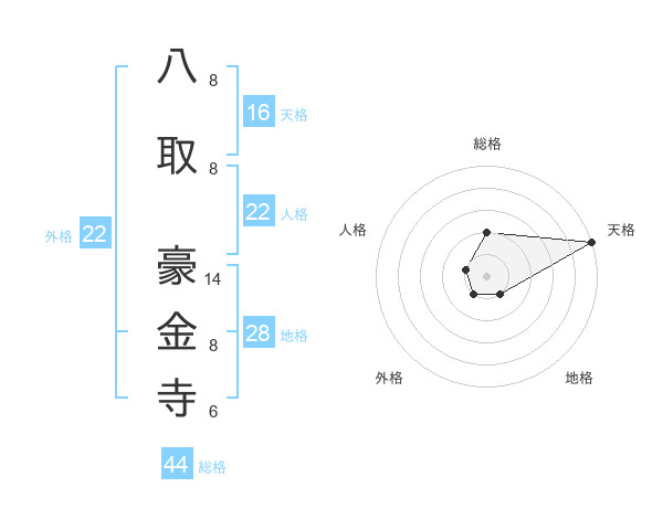 八取 豪金寺さんを姓名の画数から五運を鑑定