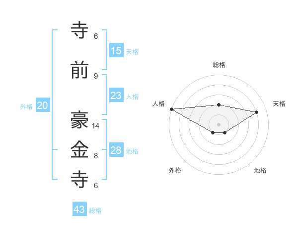 寺前 豪金寺さんの総格は43画の2点!