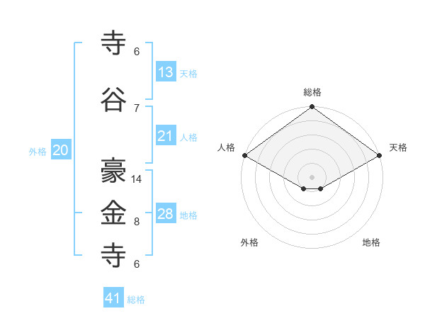 寺谷 豪金寺さんの総格は41画の5点!