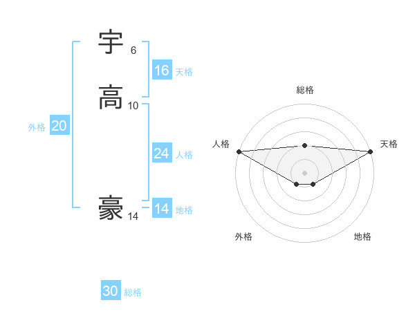 宇高 豪さんの総格は30画の2点!