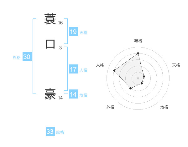 蓑口 豪さんの総格は33画の4点!