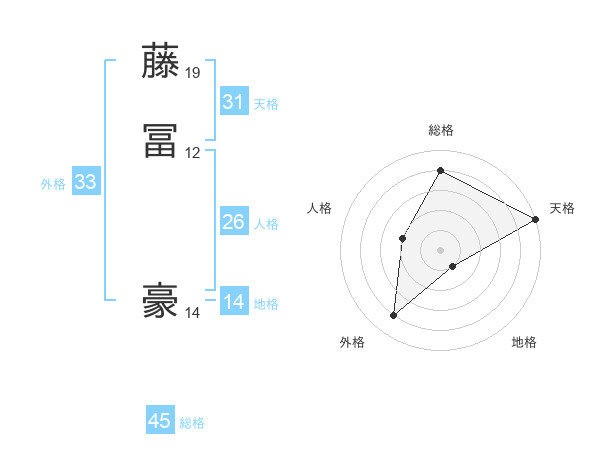 藤冨 豪さんの天格は31画の5点!