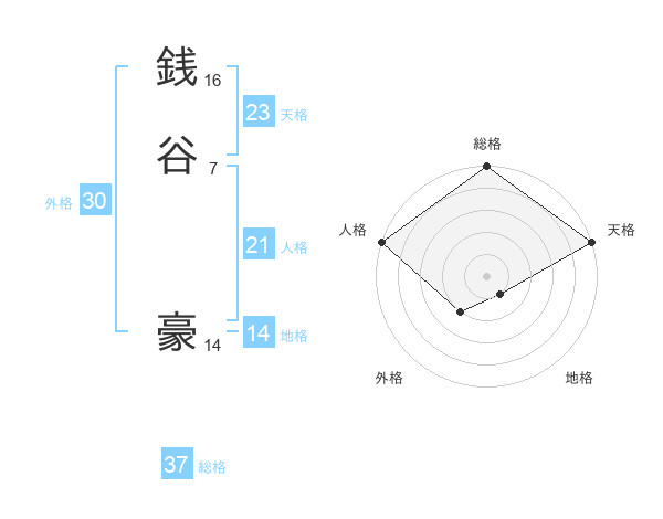 銭谷 豪さんの総格は37画の5点!