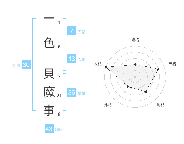 一色 貝魔事さんを姓名の画数から五運を鑑定