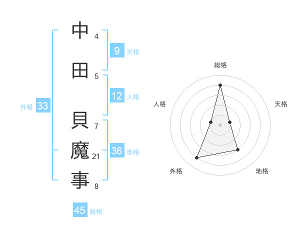 中田 貝魔事さんを姓名の画数から五運を鑑定