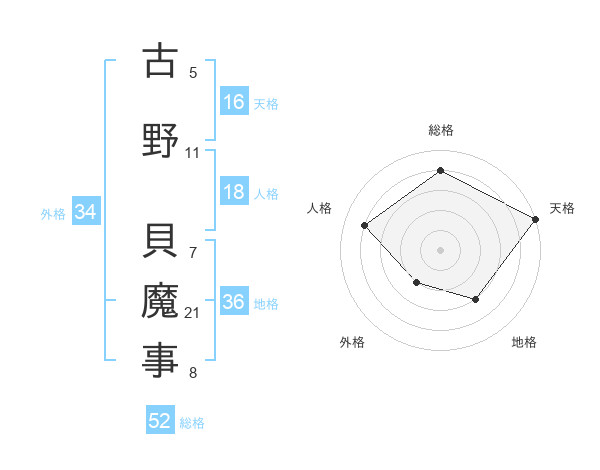 古野 貝魔事さんを姓名の画数から五運を鑑定