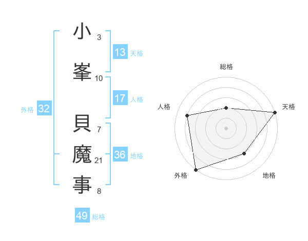 小峯 貝魔事さんを姓名の画数から五運を鑑定