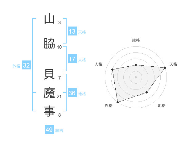 山脇 貝魔事さんを姓名の画数から五運を鑑定