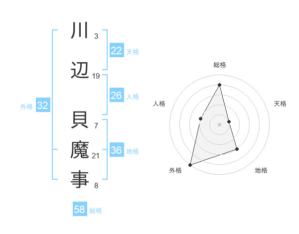 川辺 貝魔事さんの総格は58画の4点!