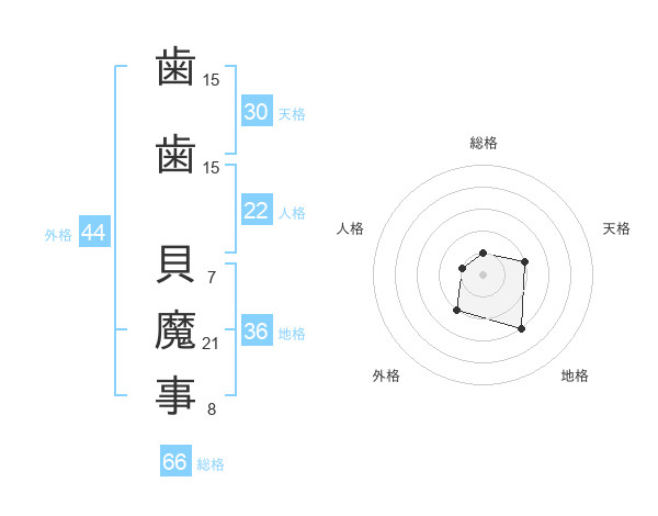 歯歯 貝魔事さんの外格は44画の2点!