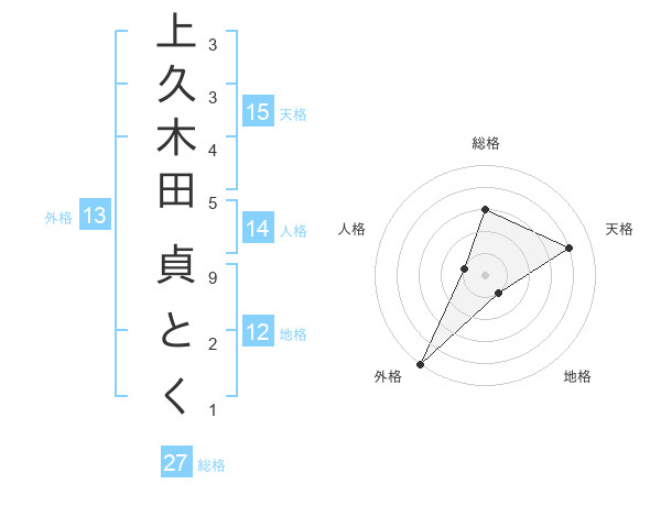上久木田 貞とくさんを姓名の画数から五運を鑑定