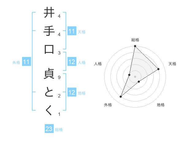 井手口 貞とくさんを姓名の画数から五運を鑑定