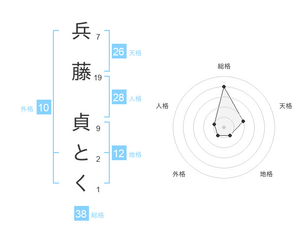 兵藤 貞とくさんを姓名の画数から五運を鑑定