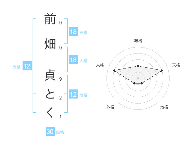 前畑 貞とくさんの外格は12画の1点!