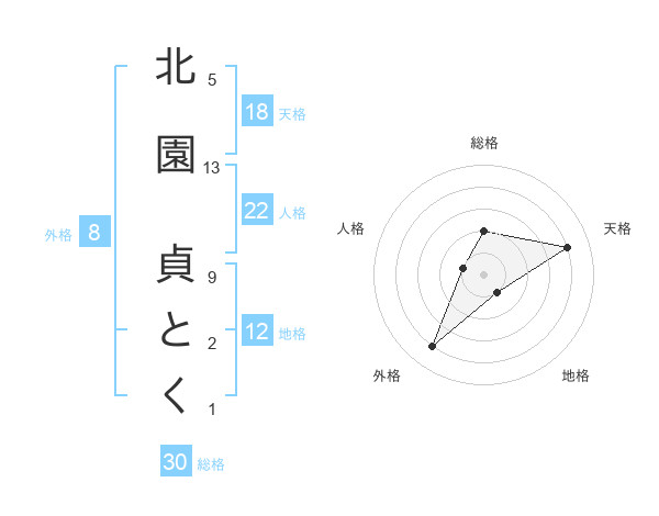 北園 貞とくさんを姓名の画数から五運を鑑定