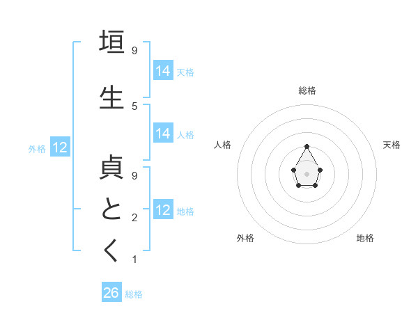垣生 貞とくさんを姓名の画数から五運を鑑定