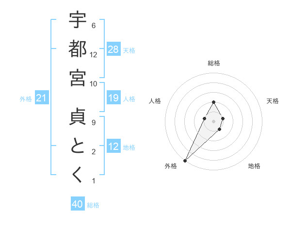 宇都宮 貞とくさんの外格は21画の5点!