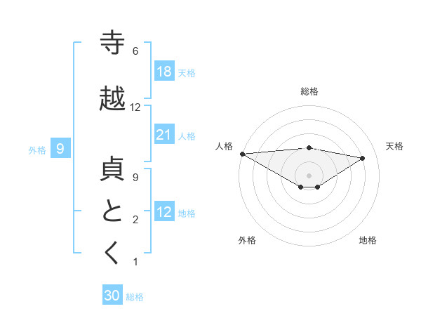 寺越 貞とくさんの総格は30画の2点!