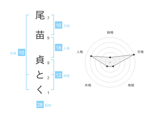 尾苗 貞とくさんを姓名の画数から五運を鑑定