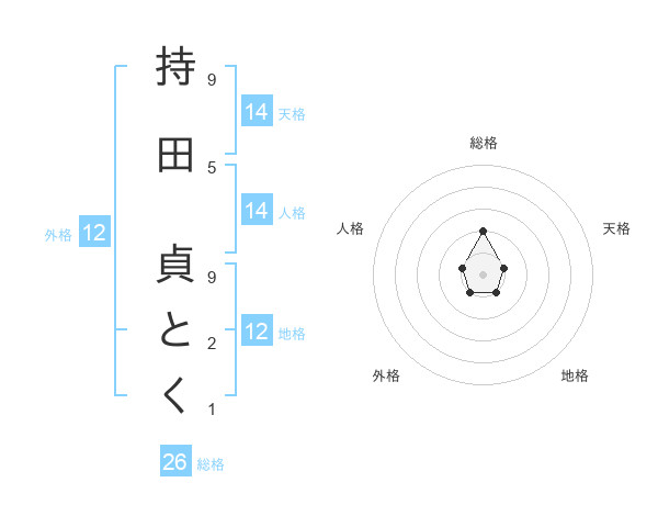 持田 貞とくさんを姓名の画数から五運を鑑定