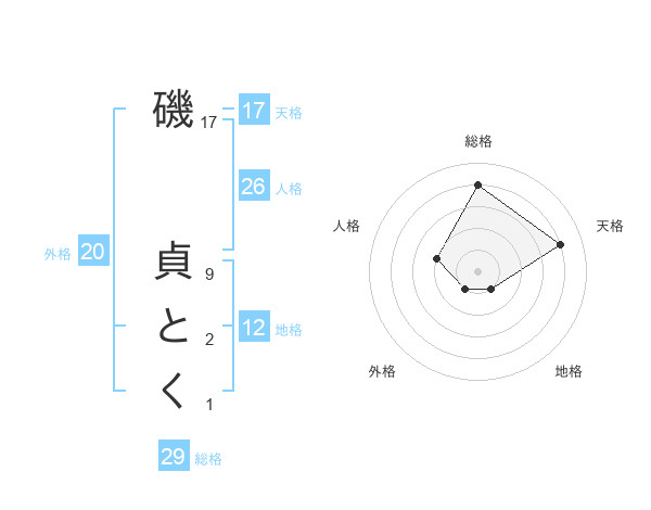 磯 貞とくさんの総格は29画の4点!