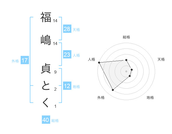 福嶋 貞とくさんを姓名の画数から五運を鑑定