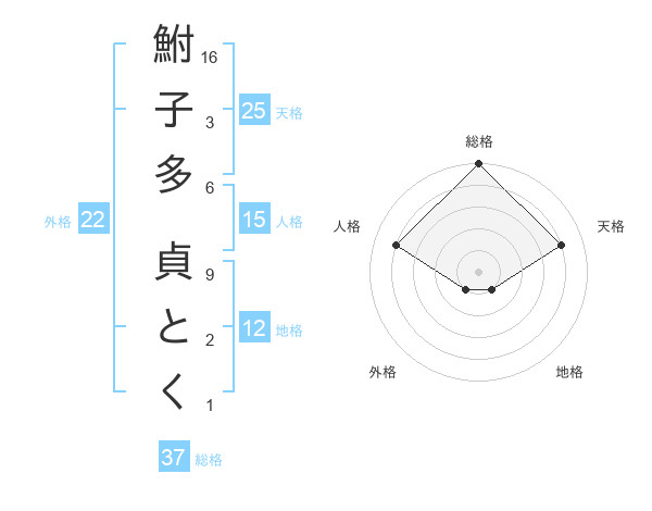 鮒子多 貞とくさんを姓名の画数から五運を鑑定
