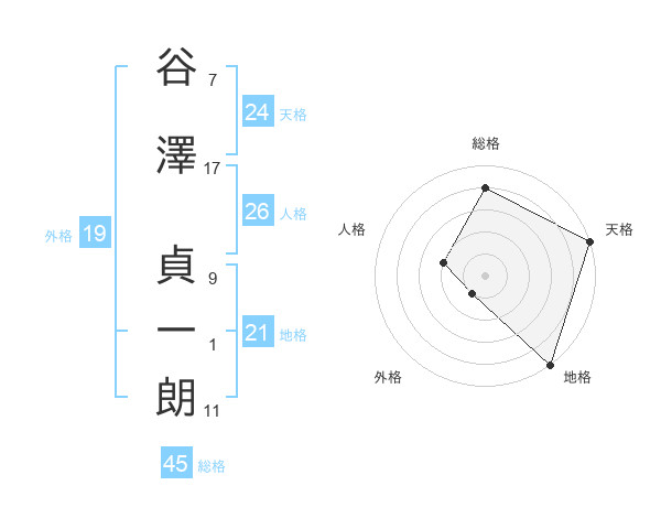 谷澤 貞一朗さんを姓名の画数から五運を鑑定