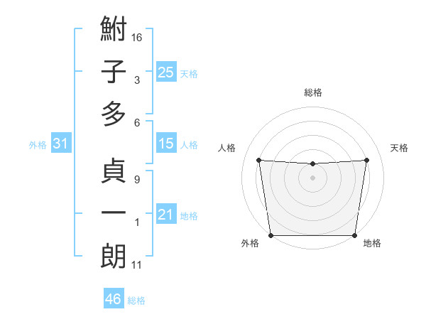 鮒子多 貞一朗さんを姓名の画数から五運を鑑定