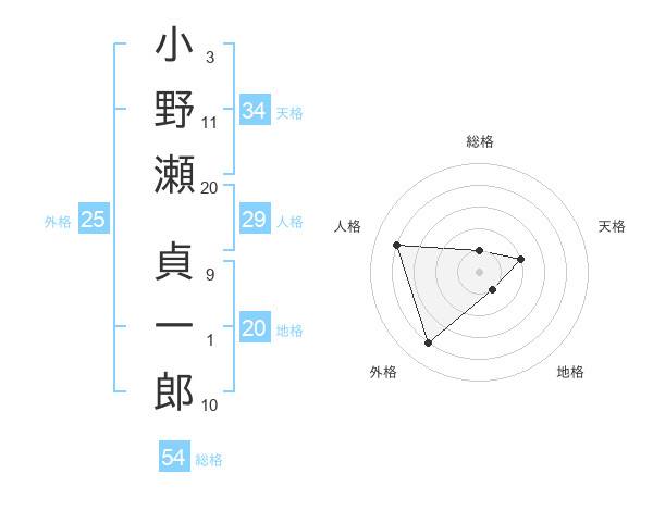 小野瀬 貞一郎さんを姓名の画数から五運を鑑定