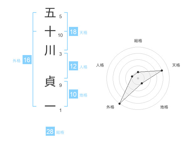 五十川 貞一さんを姓名の画数から五運を鑑定