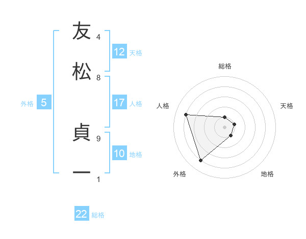 友松 貞一さんの総格は22画の1点!